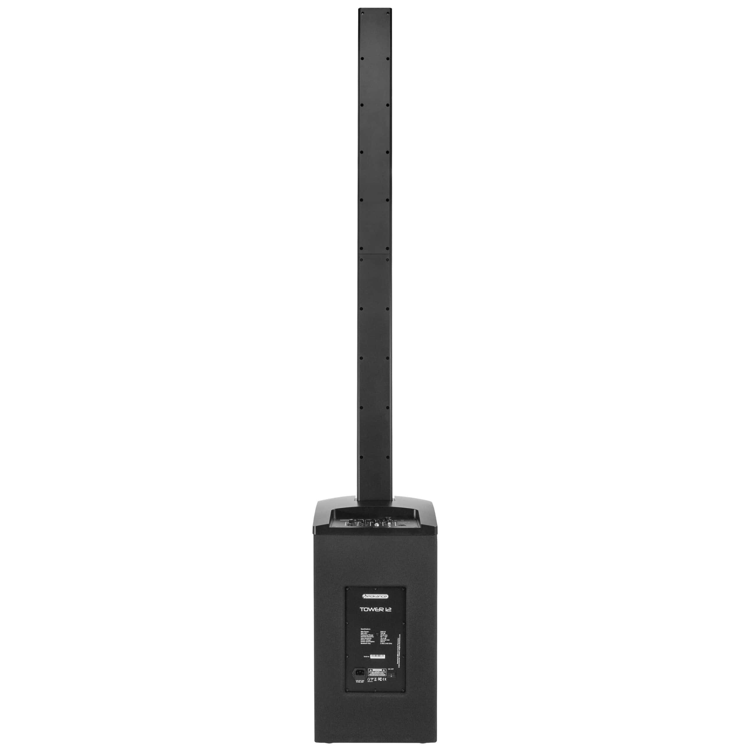 Tower 12 od spoločnosti elokance je kompletný, vysoko výkonný trojpásmový podlahový PA systém určený pre profesionálov, ktorí hľadajú kompaktnosť bez výkonových kompromisov. S maximálnym výkonom 2 000 W a subwooferom vybaveným 12″ meničom s 2,5“ feritovou cievkou tento systém poskytuje solídnu odozvu v nízkych frekvenciách od 35 Hz s maximálnym akustickým tlakom 130 dB SPL. Tento model je založený na architektúre s dvojitým zosilnením triedy D, s 800 W RMS rozdelenými medzi subwoofer (500 W) a stĺp (300 W), čo zaručuje dynamickú a stabilnú reprodukciu zvuku aj pri vysokej hlasitosti. Stredný rozsah zabezpečuje šesť 3″ feritových magnetických meničov v kombinácii s 1″ neodýmovým HF meničom s 1,8″ membránou, čo zaručuje presnú, neagresívnu reprodukciu až do 20 kHz. Akustické vyžarovanie 100° x 40° nad 1 kHz zaisťuje rovnomerné pokrytie, ideálne pre zasadacie miestnosti, firemné akcie alebo mobilné aplikácie. Pokiaľ ide o konektivitu, Elokance Tower 12 ponúka kombinovaný vstup XLR / 6,35 mm jack, pomocný vstup (RCA + 3,5 mm mini-jack), linkový výstup XLR a modul Bluetooth 5.3 s funkciou TWS pre bezdrôtové pripojenie dvoch reproduktorov. Vstavané DSP vylepšuje celkovú odozvu pre rýchlu prevádzku Plug & Play bez potreby externého spracovania. Šasi je zmesou ABS a viacvrstvovej brezovej preglejky, ktorá kombinuje ľahkosť s robustnosťou pre transport. Systém je dodávaný s dvoma taškami, jednou pre stĺp a jednou pre box.